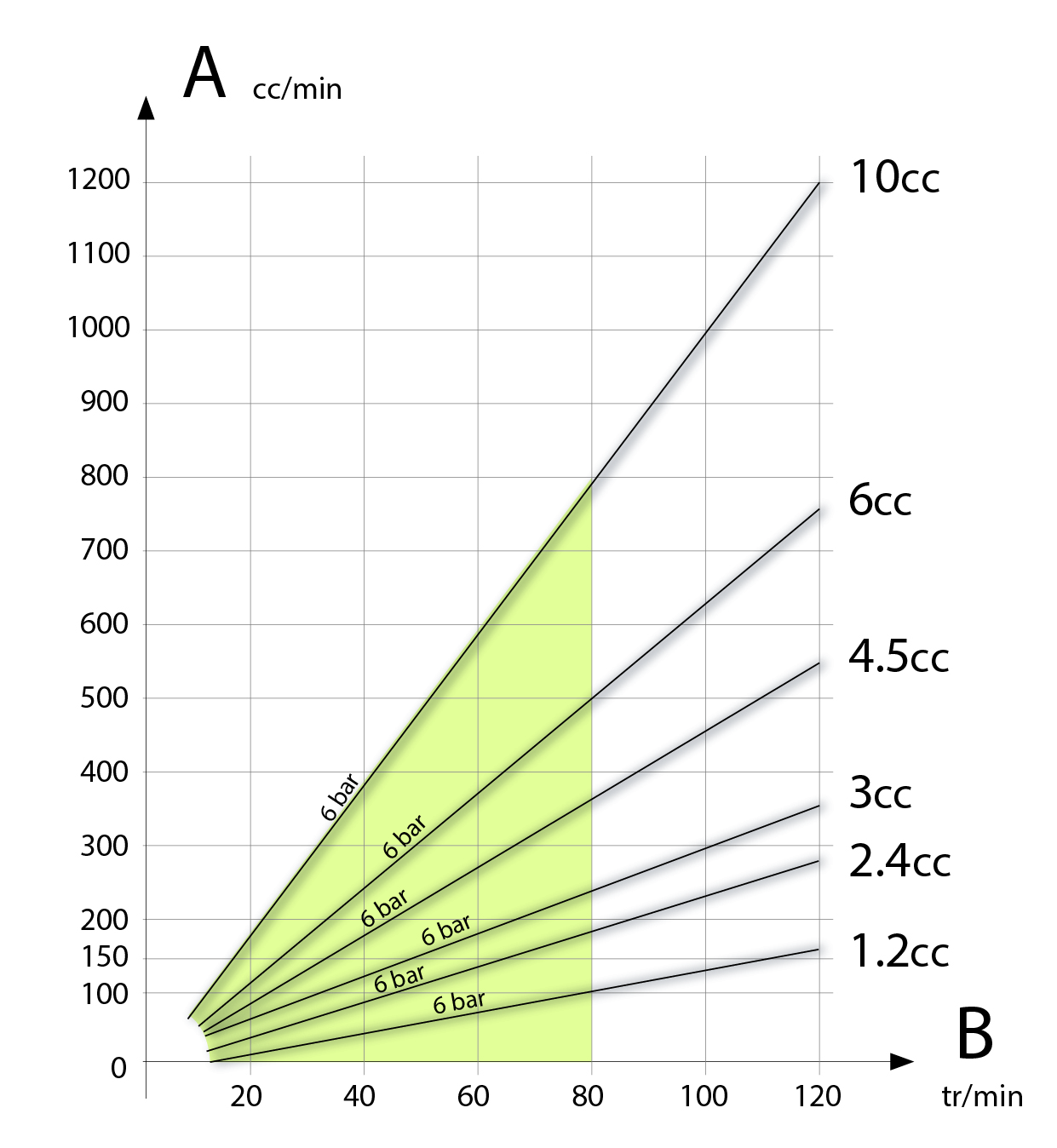 Die Fördermenge reicht von 2 bis 50 L/Stunde und ist immer proportional zur Drehzahl der Zahnradpumpe. Die Auswahl der passenden Pumpe geschieht in Abhängigkeit von der gewünschten Fördermenge und dem Drehzahlbereich, der idealerweise unter 80 U/Min liegt.